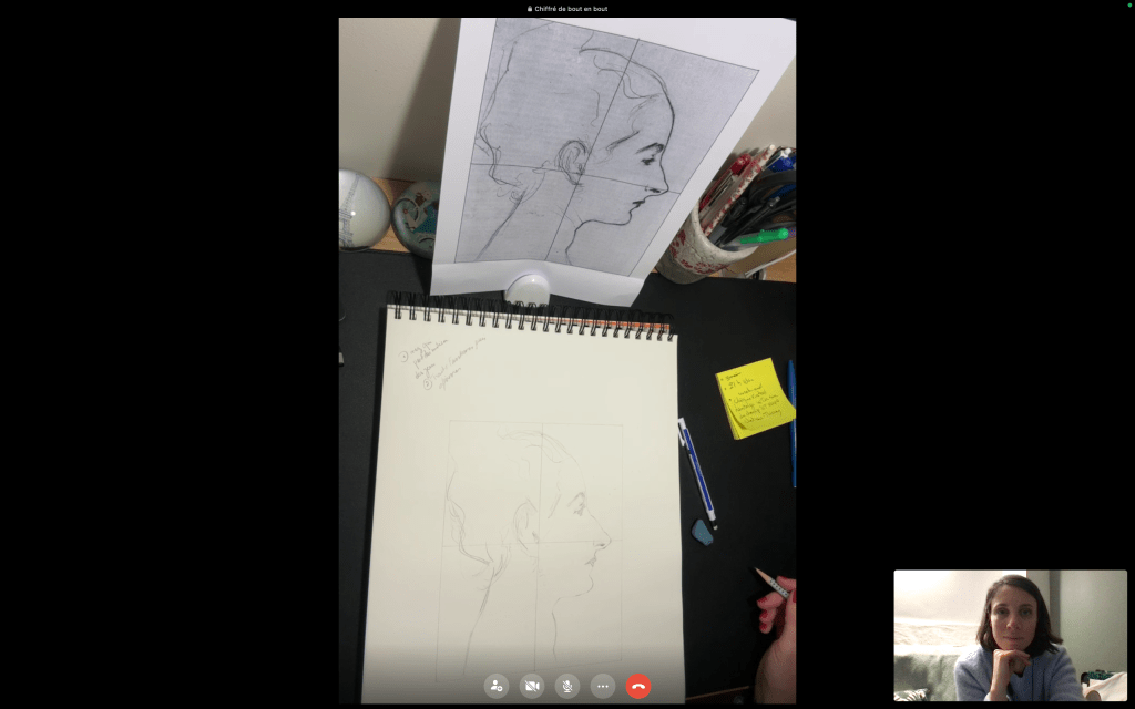 Vous souhaitez apprendre le dessin ou perfectionner votre technique sans quitter votre domicile ? Mes cours de dessin en visio s’adaptent à vos besoins, en individuel ou en petit groupe, pour un moment d’apprentissage créatif et personnalisé.